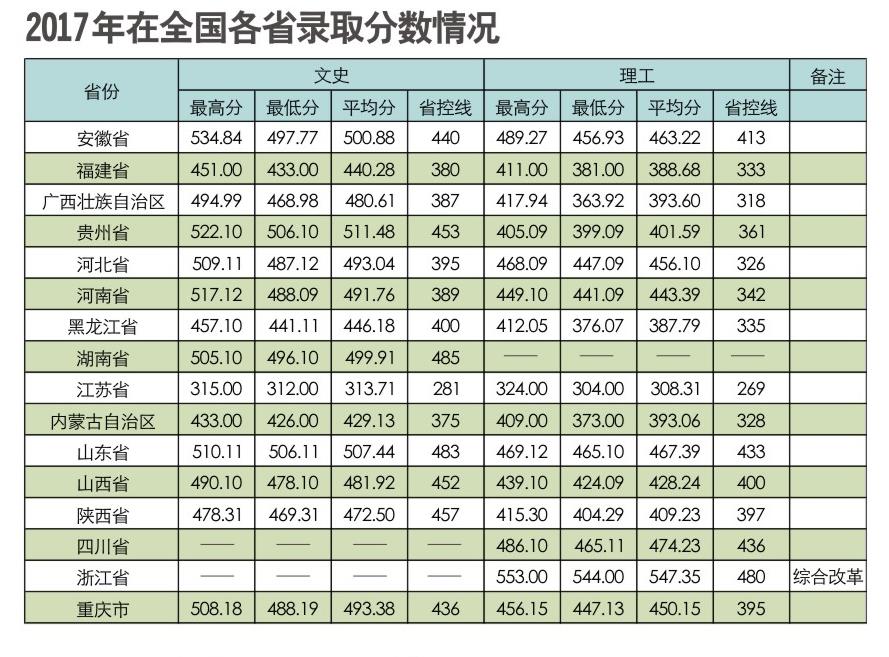 2017年各省录取分数线