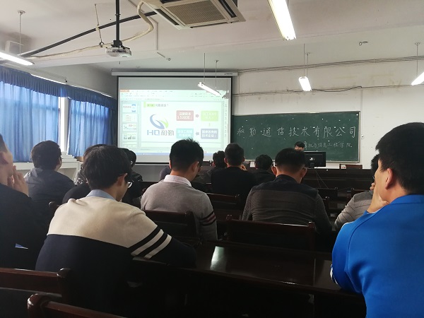 和勤通信技术有限公司校园专场招聘会于2017年10月19日下午在西湖校区实验B楼306举行,和勤通信技术有限公司阜阳分公司家集客管理员赵宏图主任和人事专员张佳慧、计算机与信息工程学院就业指导员杨莉莉参加招聘会,2014级部分同学参加会议。