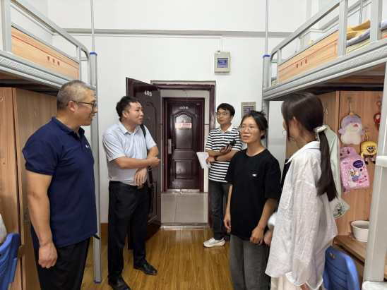 走访慰问,暖心服务。学院党政领导带领新生辅导员深入宿舍,与新生和家长亲切交流,细致了解生活、住宿等情况。特别看望了来自内蒙古、黑龙江、四川等外省的新同学,详细询问行程、是否存在困难等,鼓励他们尽快融入新环境、适应新角色,努力学习、快乐生活。
