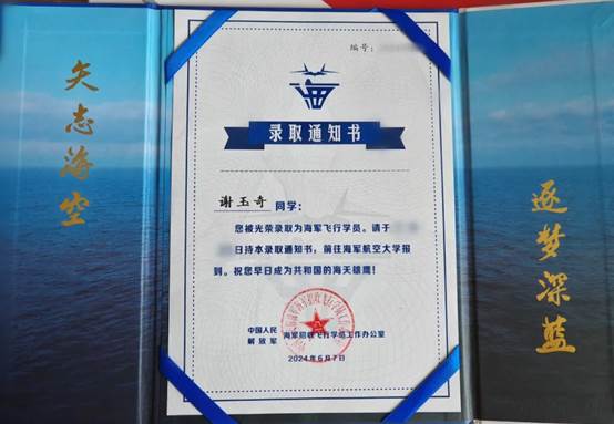 计算机与信息工程学院2020级计算机科学与技术(卓越应用)1班谢玉奇参加2024年度海军招飞选拔并顺利被海军航空大学录取,今日前往学校报到,成为我校首位直招海军飞行学员!