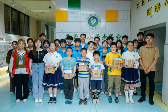 活动结尾,阜阳师范大学志愿者团队为集贤路小学的六位纯善少年准备了 “六一”儿童节礼物。最后,集贤路小学校长胡倩倩与阜阳师范大学师生志愿者一同合影,并希望纯善少年们能够从小树立“科技创新、强国有我”的志向,当下勇当小科学家,未来争当“科学大家”。