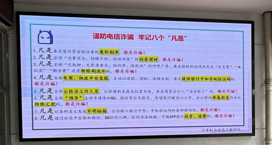 学院还利用安全知识讲座、制作安全教育宣传栏、举办安全知识竞赛等方式,广泛深入开展安全教育。与此同时,学院还利用网络平台,定期发布安全提示和预警信息,提醒师生们时刻保持警惕,增强自我保护意识。