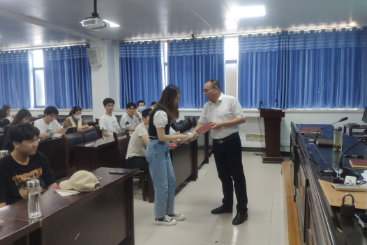 (朱明山书记为新发展党员颁发笔记本)