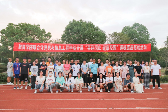 10月2日下午,计算机与信息工程学院联合教育学院开展“喜迎国庆,健康校园”师生趣味素质拓展活动,包括一“站”到底、“珠”行万里、不倒森林、一圈到底、沙包掷准盘等。活动在西湖校区第一生活区南操场举办,朱明山、魏文霞、王诗兵前往现场为师生喝彩并参与活动。
