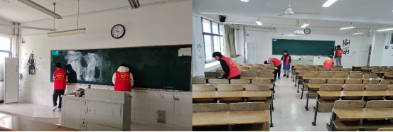3、“心怀感恩·榜样先行”志愿服务。组织部分受助同学于3月18日上午在躬行楼A楼举办教室清扫美化活动,同学们用辛勤付出助力美好校园,进一步增强了青年学子主人翁意识,践行志愿服务理念。