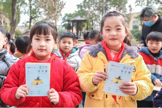 文具捐赠仪式上,王湾小学一年级学生集体诵读了梁启超的《少年中国说》,献给到访的计算机与信息工程学院的老师和学生,小学生们精神饱满、意气风发,展现出了良好的精神面貌。青年志愿者协会志愿者和计算机学生党支部青年党员也献上了一首《我和我的祖国》送给王湾小学的小朋友们。随后,志愿者们向小朋友分发了捐赠的学习文具物品。