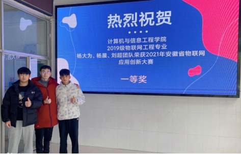 近日,由安徽省教育厅主办,安庆师范大学、合肥师范学院、安徽省电子学会、安徽省计算机学会共同承办的2021年安徽省物联网设计大赛成绩揭晓。我校共获一等奖1项、三等奖3项的好成绩,其中,由朱明山、李恒两位老师指导的计算机与信息工程学院2019级物联网工程专业1班的杨大为、杨晨、刘超团队的参赛作品“The firewall-基于ZigBee的联防联控森林安防防火墙”,荣获创意赛道本科组一等奖。