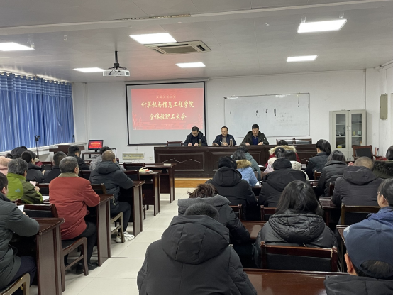 1月7日下午,计算机与信息工程学院2021年度教职工大会在躬行B楼306举行。学院党政领导及全体教职工参加会议,会议由党委书记朱明山主持。
