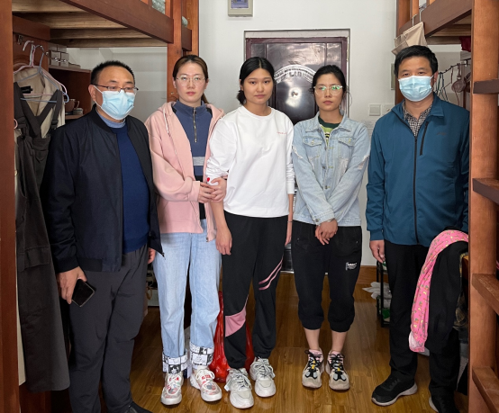 4月17日上午,计算机与信息工程学院党委书记朱明山、院长王诗兵、信息科学学生党支部书记杨莉莉、研究生辅导员赵维维来到西湖校区一区七栋622、624研究生宿舍,看望受到学校通报表扬的张雪、周敏、方丽君三位同学。