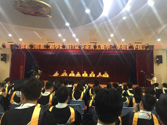 又是一年五月时,又是一年毕业季。计算机与信息工程学院于2017年5月7日在阜阳师范学院西校区举办了2017届毕业生毕业典礼。出席本次典礼的有计算机与信息工程学院党总支书记朱明山、前院长王戴木、副院长王峰、副院长王诗兵、副书记王永刚,他们与300余名毕业生齐聚一堂。