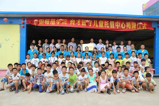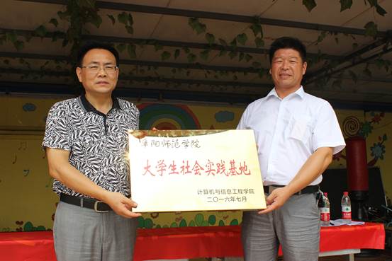 2016年7月14日上午9:30,阜阳师范学院计算机与信息工程学院在太和县税镇育才留守儿童托管中心举行大学生实践基地揭牌仪式。院党总支书记朱明山、党总支副书记王永刚、党总支秘书岳申、团总支书记徐悦、育才留守儿童托管中心院长王贺标、育才留守儿童托管中心主任徐汝奎、18名志愿者及50多名留守儿童参加了此次揭牌仪式。揭牌仪式由徐悦主持。