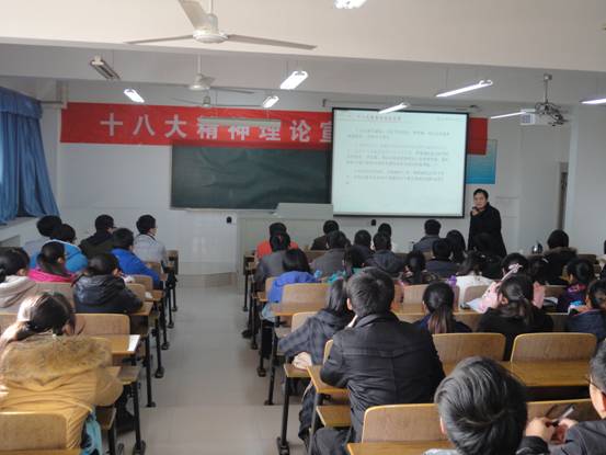 2012年12月5日下午,计算机与信息学院在西湖校区实验楼A楼303举行以“政治宣言 理论指南和行动纲领——十八大报告文本解读”为主题的十八精神理论宣讲报告会。本次报告会邀请校党委宣传部副部长卢少求教授担任主讲,计算机与信息学院全体教职工和学生党员参加了此次学习。