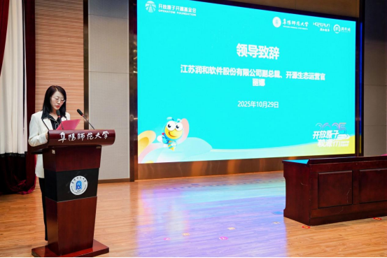 王诗兵在致辞中指出,开源是新质生产力发展的重要引擎,开源理念是高校创新型人才培养的重要催化剂,开源教育需要更多优质资源与行业力量加持,学校将以此次活动为契机,进一步推动开源理念融入人才培养,深化校企协同育人。