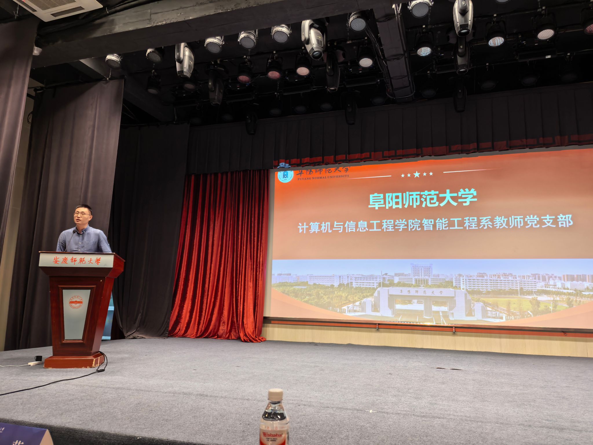 4月10日,由安徽省委教育工委指导、安庆师范大学党委主办、该校党委组织部与人工智能与计算机学院党委联合承办的全省高校“双带头人”教师党支部书记“强国行”专项行动第二小组第二次交流活动在安庆师范大学举行。来自省内16所本专科院校的党支部代表参会,我院智能工程系教师党支部副书记徐张宝在会上作专题报告。