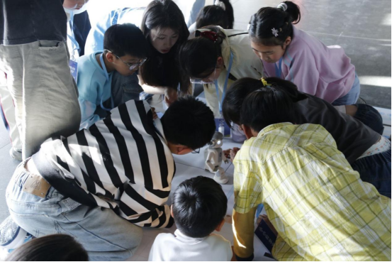 仪式结束后,在大学生志愿者引导下,各组学员有序进入各体验工坊,开启第一场人工智能体验活动。