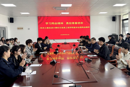 为深入学习宣传贯彻2026年全国两会精神,引导青年学生准确把握国家发展大势、坚定理想信念、勇担时代使命,4月23日下午,校关工委副主任张钦、委员张锡海应邀到计算机与信息工程学院作专题宣讲报告。计算机与信息工程学院团员发展培训班50名学员参会,团学负责人王毅恒主持报告会。