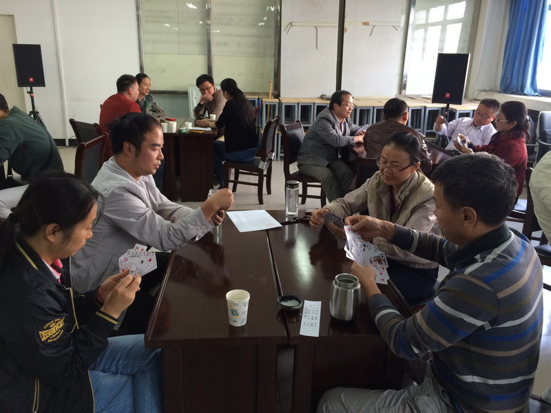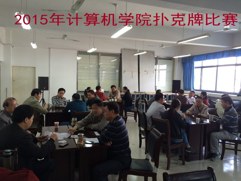为了丰富教职工的业余文化生活,增进教职工之间的交流,计算机与信息工程学院分工会于2015年10月11日上午在西湖校区实验B楼306教职工活动室举行教职工扑克牌(掼蛋)比赛。