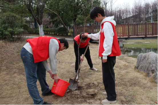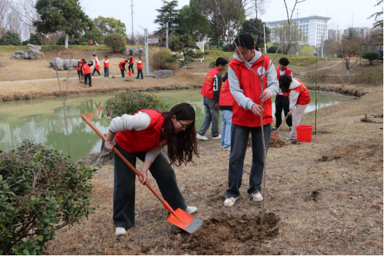 春风送暖添新绿,青春志愿正当时。在第47个植树节来临之际,为深入践行习近平生态文明思想,增强青年学子社会责任感,3月11日下午,计算机与信息工程学院青年志愿者协会、学生党支部联合单桥社区,赴七渔河公园开展“学习雷锋植新绿,青年行动增春色”植树节主题活动。学院团学负责人、计算机学生党支部书记王毅恒带领学生党员和青年志愿者参加活动。