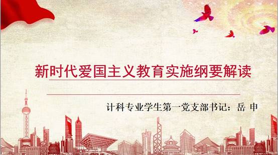 岳申以《新时代爱国主义教育实施纲要解读》为题从新时代爱国主义教育实施纲要总体要求、基本内容、新时代爱国主义教育、丰富新时代爱国主义教育实践载体四个方面做了具体的讲解,并带领大家共同学习了《阜阳师范大学深化新时代爱国主义教育实施方案》。她教育引导支部党员时强调,爱国主义始终是凝心聚力的兴国强国之魂。实现“两个一百年”奋斗目标,体现了中国共产党高度的历史担当和使命追求,是中国人民为之长期奋斗的伟大目标,凝聚着中华儿女的共同夙愿。实现这个伟大目标,必须弘扬以爱国主义为核心的民族精神和以改革创新为核心的时代精神。并要求支部党员要牢记使命勇于担当,把自己的理想同祖国的理想、把自己的人生同民族的命运紧密联系在一起,把爱国奋斗精神转化为实实在在的行动,扎根人民,奉献国家。