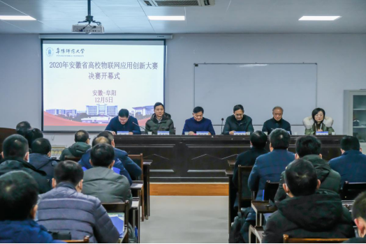 2020年12月5日,由安徽省教育厅主办,阜阳师范大学、合肥师范学院、安徽省电子学会与安徽省计算机学会承办,江苏省未来网络创新研究院协办的2020年安徽省高校物联网应用创新大赛在阜阳师范大学开幕。阜阳师范大学党委常委、副校长涂红松,安徽省计算机学会名誉理事长、安徽省电子学会副理事长、中国科学技术大学博士生导师顾乃杰教授,安徽省计算机学会副理事长、合肥工业大学博士生导师蒋建国教授,大赛组委会秘书长陈蕴教授,大赛巡视员、安徽省教育厅大学生创新创业教育办公室胡慧慧等来自省内外30多家单位的领导、评委专家与大赛组委会人员参加了开幕式。开幕式由阜阳师范大学党委委员、教务处处长张宏教授主持。