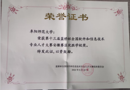 蓝桥杯全国软件和信息技术专业人才大赛是工业和信息化部组织的计算机专业竞赛,是国内领先的全国性 IT 学习赛事,连续3年入选中国高等教育学会 "全国普通高校学科竞赛排行榜",全国已超过 1600 所院校,累计 65 万余名学子报名参赛,是高等教育教学改革和创新人才培养的重要竞赛项目。在本校教务处精心组织和计算机与信息工程学院、物理与电子工程学院、数学与统计学院、美术学院等多个学院的积极参与下,本校荣获第十三届蓝桥杯安徽赛区优秀组织单位奖和优胜学校奖。
