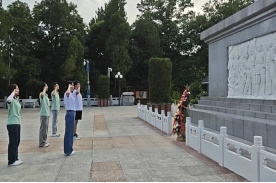 金寨县革命烈士纪念塔,建于1960年,塔高24米,塔身正面镌刻着刘伯承题写的“燎原星火”四个镀金大字。团队成员先后面对革命烈士纪念塔、洪学智将军陵墓鞠躬默哀,深切缅怀为民族事业英勇牺牲的革命先烈,追忆他们的丰功伟绩,表达深深敬意,寄托无限哀思。在革命烈士纪念塔下,党员们肃立瞻仰,高举右拳,重温入党誓词,面向党旗庄严宣誓。