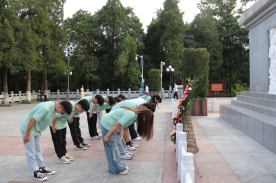 图为团队成员向革命烈士纪念塔缅怀鞠躬
