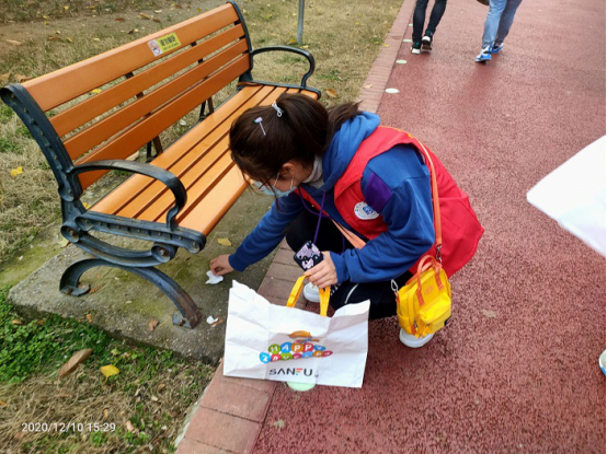 出发前,同学们首先一起观看了志愿服务公益宣传视频,进一步加深了对志愿服务精神的理解和认识。到达文峰公园后,同学们两人一组分组对文峰公园内的垃圾和落叶进行清扫。有些垃圾、“牛皮癣”不便于用工具打扫,同学们就徒手进行清理,并将污物装进了自带的回收袋里。清理中,大家不怕脏、不怕累,经过一下午的辛勤劳动,文峰公园路面环境变得呈现出焕然一新的面貌。园内散步的市民也纷纷为我们的志愿服务精神点赞,还有一些小朋友主动加入我们的队伍。虽然天气很冷,但是看到劳动后干净、整洁的环境,同学们内心满满的成就感,脸上洋溢着开心的笑容。