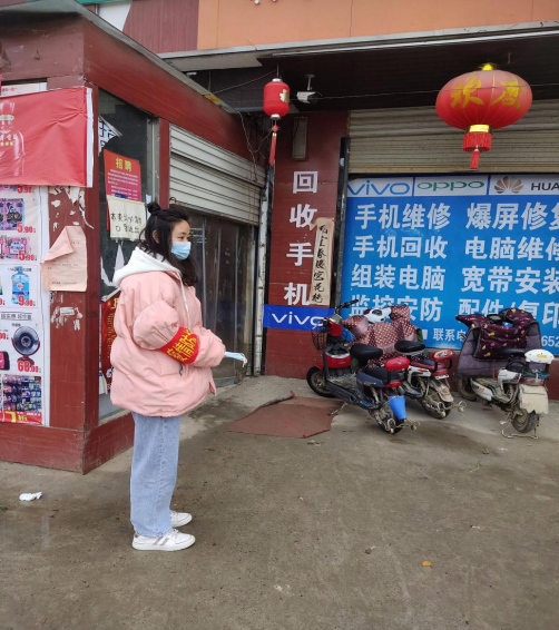 在超市、医院等场所帮忙分发口罩,在村委会辅助设计防控宣传PPT、积极张贴疫情防控的宣传材料等。