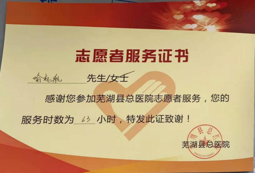 在湾沚区医院的这段志愿服务经历让我受益匪浅,也让我更加明白每个平安日子都来之不易,今后我会更加珍惜以后的生活。