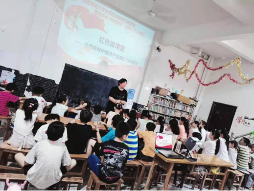 “颍淮善郡·科教留守”暑期社会实践团队围绕‘四史’学习教育,开展了“传承红色文化,关爱留守儿童”主题红色微课堂,以学生讲述、分享英雄人物的光辉事迹和观看微电影为本次红色微课堂的主要形式,通过红色故事让孩子们启迪心智、接受爱国爱党教育,传承红色基因。