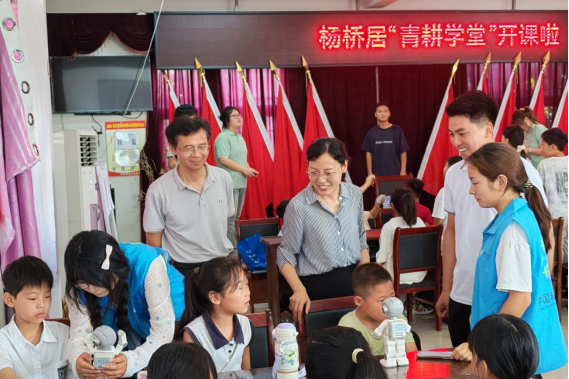 在插花镇杨桥居,黄云志实地查看科技启蒙课堂开展情况。志愿者依托中国科协“翱翔之翼”项目,设计编程思维、机器人组装、无人机操作等互动课程,为乡村儿童开启科技探索之门。黄云志与孩子们亲切交流,鼓励他们保持科学好奇心,在动手实践中感悟创新魅力。