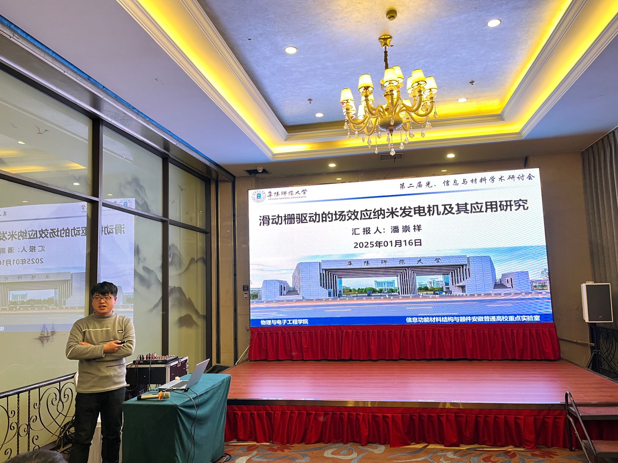 为助推我国信息功能材料技术的快速发展,促进光、信息与材料领域的科研人员和产业同行的交流与合作,同时助力信息功能材料结构与器件安徽普通重点实验室及我校物理学科的长远建设与进步,2025年1月15日至17日,“第二届光、信息与材料学术研讨会”在安徽阜阳成功召开。阜阳师范大学科研处处长张丙开教授,实验实训中心主任何娟教授,物理与电子工程学院党委书记吴学军,物理与电子工程学院院长朱勇教授、副院长武山教授以及30余位国内外高校与科研院所的专家、学者参加了此次会议。