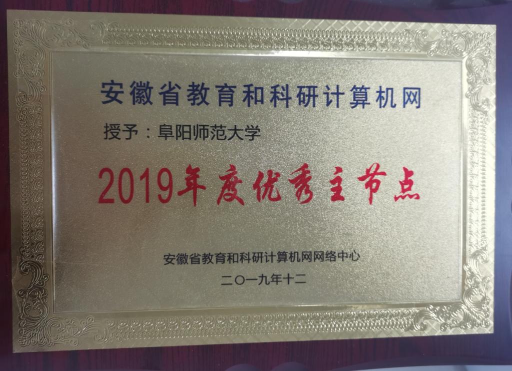荣获安徽省教育和科研计算机网2019年度优秀主节点