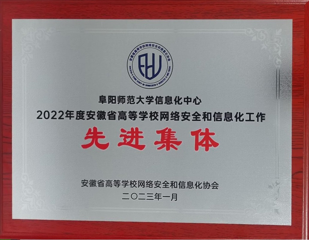 荣获2022年度安徽省高等学校网络安全和信息化工作先进集体