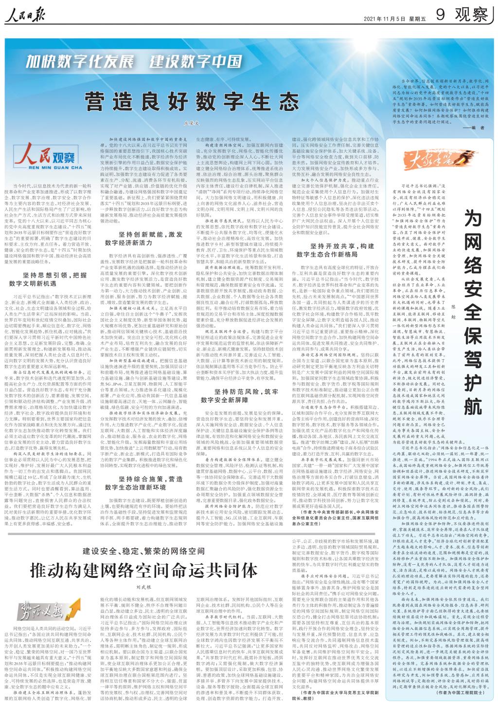 11月5日,《人民日报》刊发中央宣传部副部长,中央网络安全和信息化委员会办公室主任、国家互联网信息办公室主任庄荣文署名文章。全文转发如下: