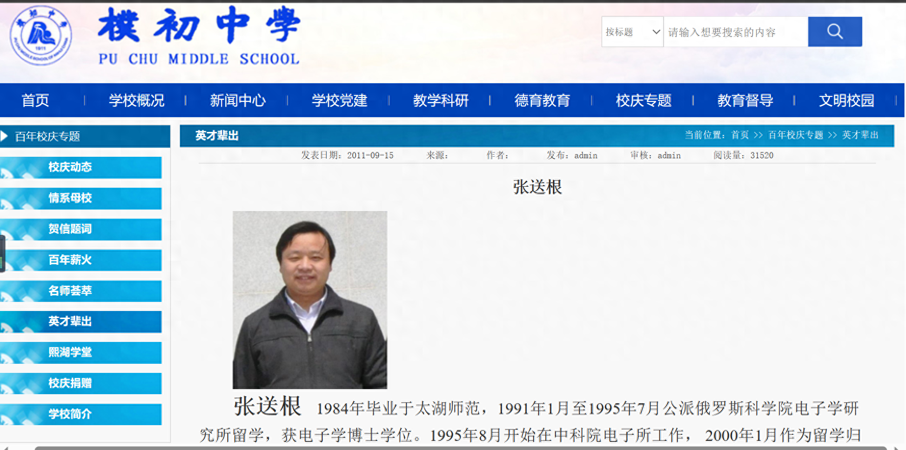 第四位则集上述师范生的特点于一体,他叫张送根,芜湖人,1966年出生,1984年毕业于太湖师范学校。