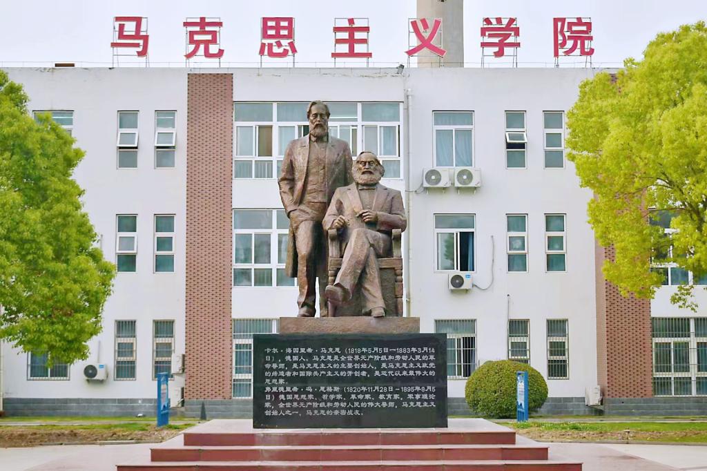 马克思恩格斯雕塑寓意深远。马克思、恩格斯是马克思主义的创立者,马克思主义照亮了人类探索历史规律和寻求自身解放的道路。马克思恩格斯铜像雕塑的落成将进一步激发阜阳师大人对马克思主义科学真理的坚定信念,营造了马院姓马、在马言马、马院信马的良好氛围。