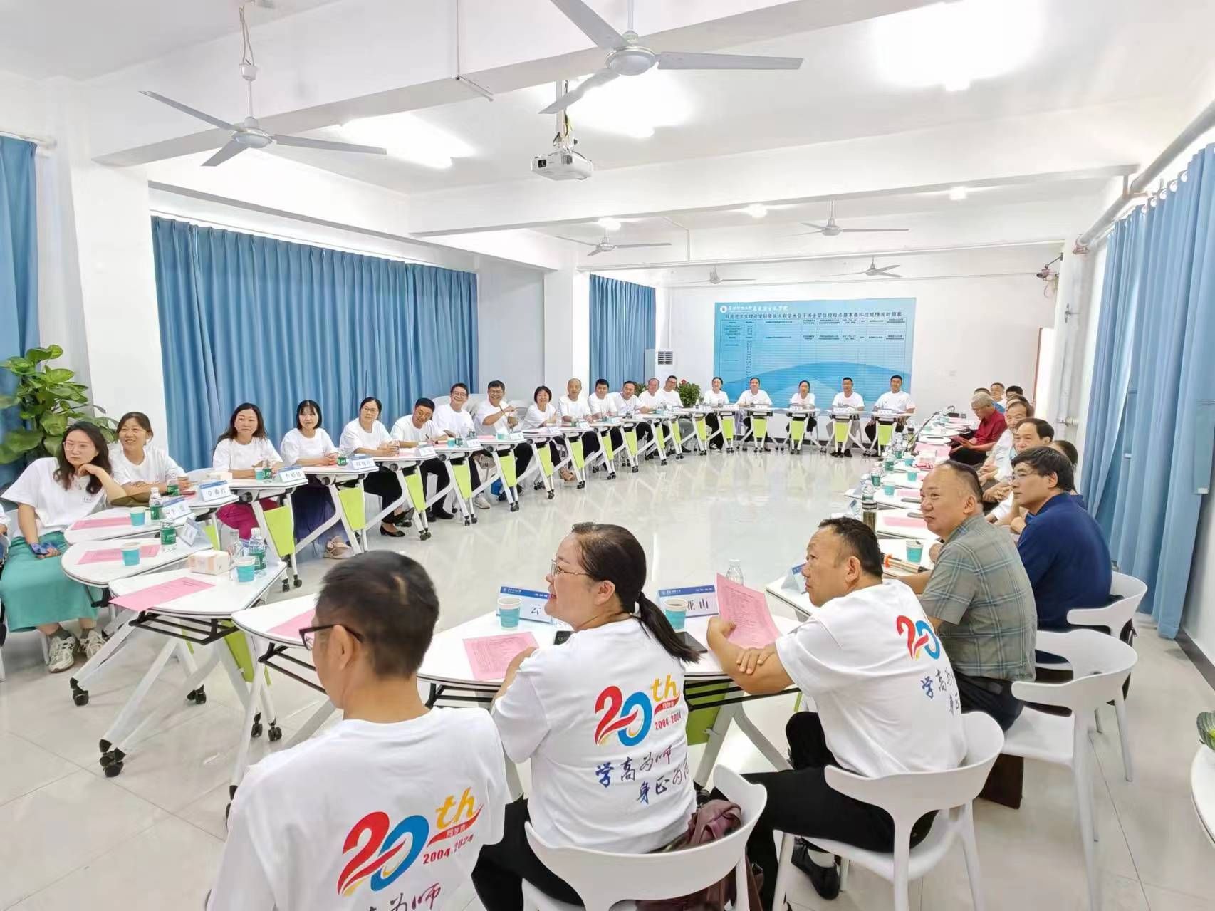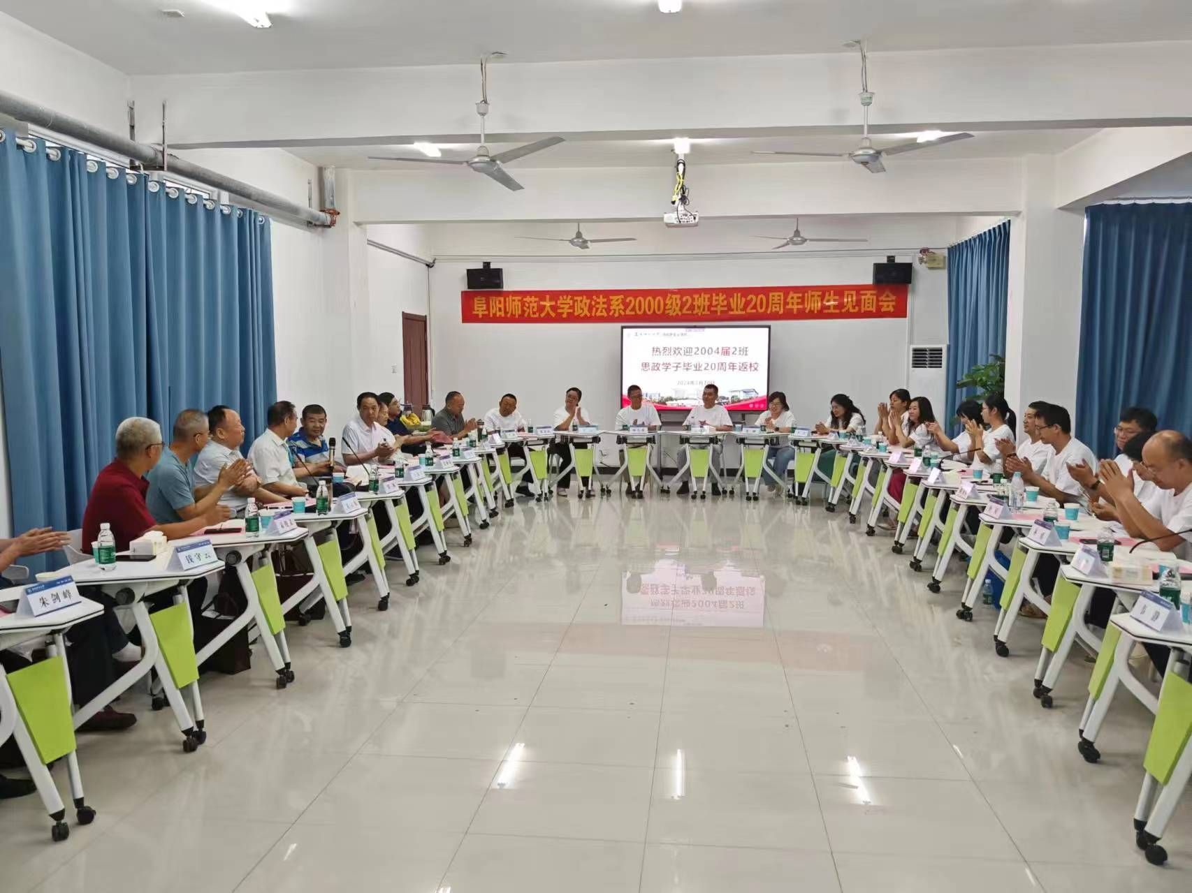 重温青春美好,积聚奋斗力量。在毕业20周年之际,7月20日,在西湖校区三里桥校园马克思主义学院201会议室,来自全国各地的我校思政专业2004届2班27位同学与老师们齐聚一堂,共叙成长经历、回忆青春美好、感恩母校培养、汇报各自情况。该班时任老师邹林、王海亭、张锡海、宋俊义、闫成俭、韦向阳、钱守云、朱剑峰、余为青等应邀参会。马克思主义学院院长朱宗友致辞。座谈会由该班班长甘金义主持。