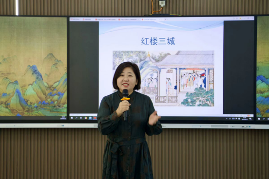 论坛第三场由文学院1980级校友、作家、南京市作协副主席、南京传媒学院新闻传播学院院长陈正荣教授主讲,高群主持。高群指出,校友是学院最宝贵的财富,是学院发展最可信赖的力量,校友的成就与辉煌,是学院永远的骄傲。陈正荣以“红楼三城:南京·苏州·扬州”为题,以《红楼梦》的个人阅读经历为切入点,深入剖析了作品中多次出现的南京、苏州、扬州三地,并结合曹雪芹的生平、书中人物的足迹和历史文化背景实地探访了这三座城市的风物景致,绘制出了一本专属于“红迷”的文学地图——《红楼三城:南京、苏州、扬州》。他通过城市这一个真切而鲜活的入口,去亲近《红楼梦》这本传世名著,从不同的角度深入理解曹雪芹的创作思想和作品的深刻含义。