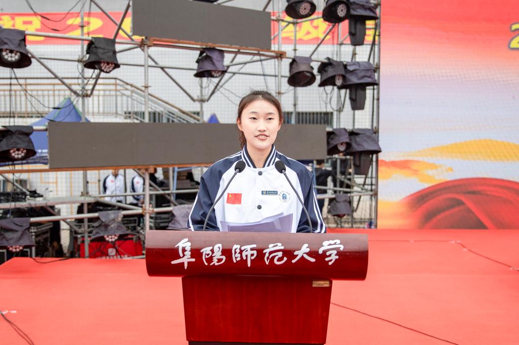 生物与食品工程学院2023级学科教学(生物)孙斯佳、外国语学院2023级英语(师范)专业的汪子迪分别作为研究生新生代表和本科新生代表发言,他们以坚定有力的话语表达了将在阜师大奋力谱写人生新篇章,通过学习与实践让自己不断成长成熟,用坚定的信念和务实的行动去实现新时代大学生的理想追求。