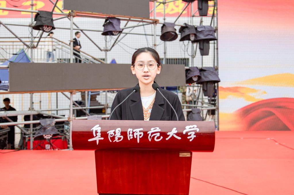 教育学院2020级小学教育专业马思雨代表高年级学生分享了在学校的学习成长经历,希望学弟学妹们在大学里以昂扬的精神面貌勇毅前行,永葆初心,在机遇面前主动出击,在困难面前迎难而上,在风险面前积极应对,用青春谱写自己的人生华章。