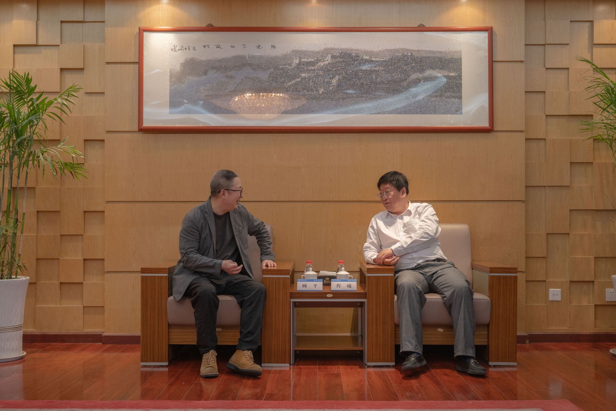 会见中,程曦对顾平重返母校表示欢迎,并从学科建设、人才培养、科研创新以及博士点申报等多方面介绍了学校近年发展情况。他表示,顾平作为我校的优秀校友,始终心系母校发展,在艺术研究和教育领域的突出贡献不仅为个人赢得了荣誉,更为母校增添了光彩。同时,他对顾平向学校捐赠的著作以及一直以来对我校美术学院的帮助表示感谢,希望顾平继续在助力母校美术学科建设与青年教师培养方面提供更多智力支持。
