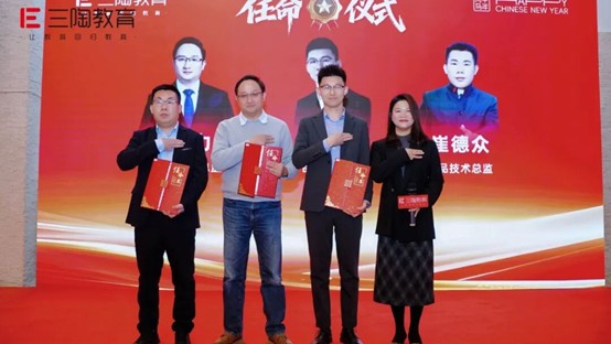 总经办作为公司中枢大脑与领航核心,统筹全局、引领发展。三陶教育创始人、董事长张锦超任命三陶教育集团总裁康子健、三陶教育CEO尹留勇、三陶教育集团业务副总经理张伟、三陶教育集团业务副总经理雷伟为总经办核心成员。