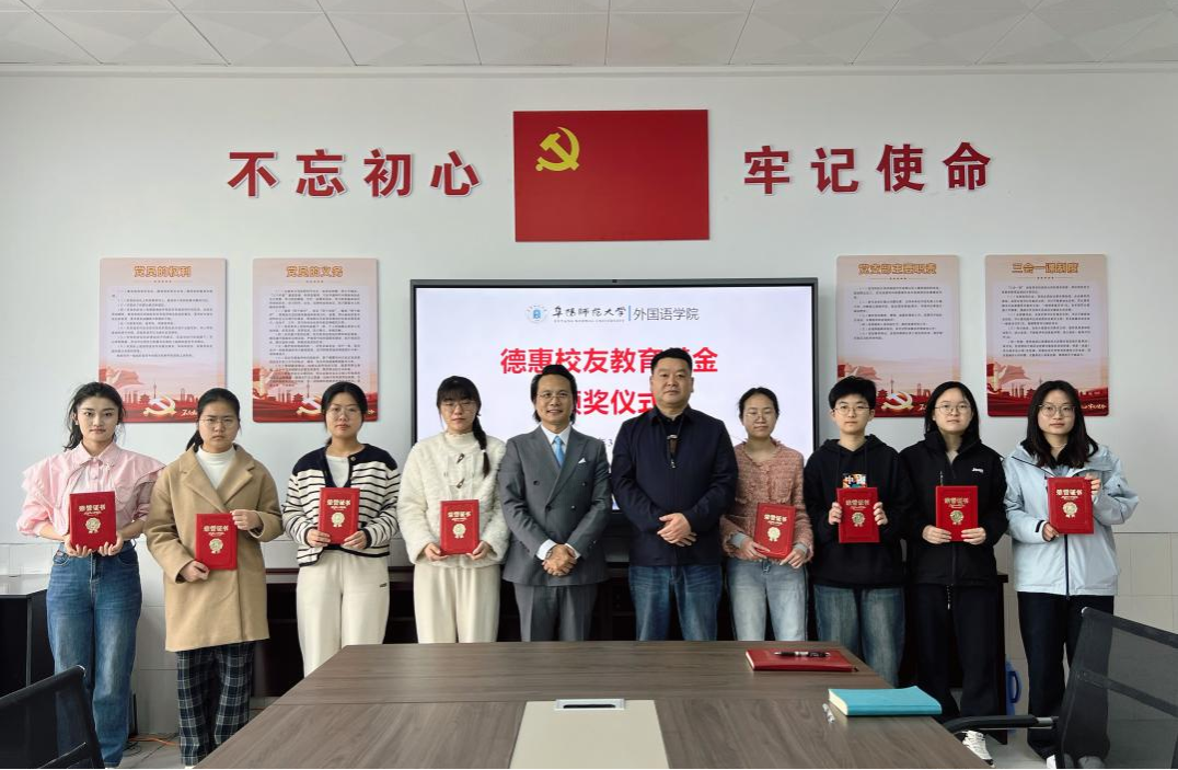 为凝聚校友力量、深化资助育人实效,助力学生成长成才,3月27日,我校举行“德惠校友教育基金”颁奖仪式暨校友职业规划讲座。校党委常委、副校长窦贤琨,我校校友、德惠校友教育基金设立人、湖南优钻工程科技有限公司总经理申德义以及德惠校友教育基金委托人、教务处负责人出席活动。外国语学院负责人、辅导员及获奖学生代表参加活动。