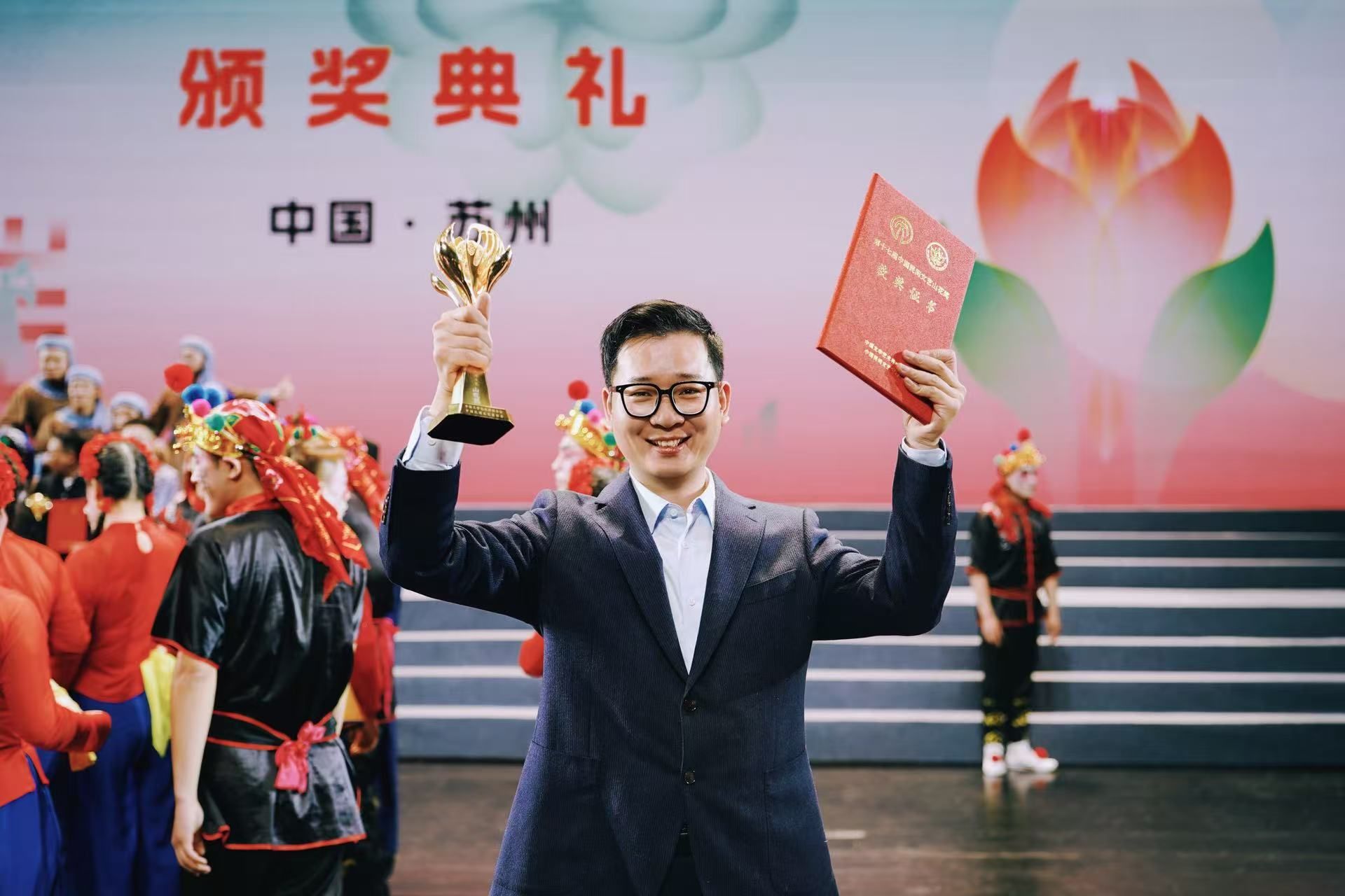 近日,第十七届中国民间文艺山花奖颁奖典礼在苏州文化艺术中心举行。我校2013级美术学院校友、徐州剪纸第三代传承人刘冠玉,凭借作品《日常纸记》荣膺“优秀民间工艺美术作品”奖。