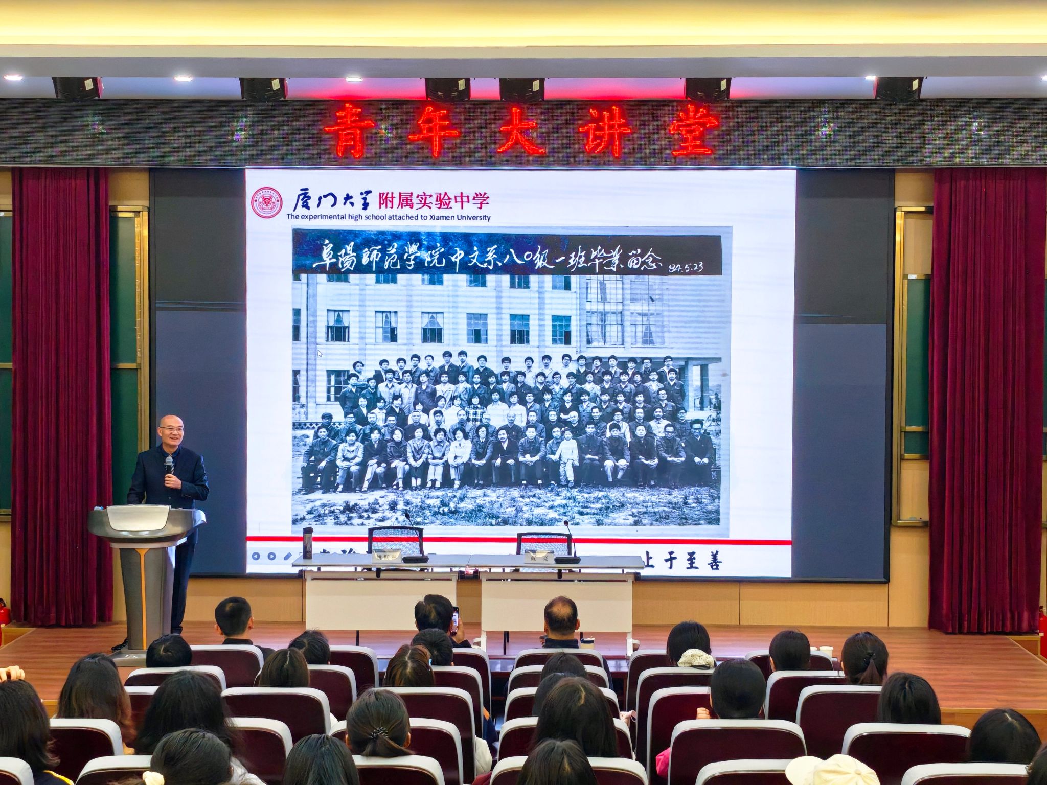 4月22日下午,我校“青年大讲堂”系列宣讲活动在三里桥校园顺利举行。文学院1980级杰出校友、全国优秀教师、厦门大学附属实验中学名誉校长、中国教育学会常务理事姚跃林应邀回到母校,以《办学生喜欢的学校——母校塑造了我的教育观》为题,为学院师生带来一场兼具思想深度与教育温度的专题报告。报告会由校团委书记戴亮主持,校友办主任李国强、文学院党委副书记任竹良、副院长尹奇岭和文学院师生代表参加活动。