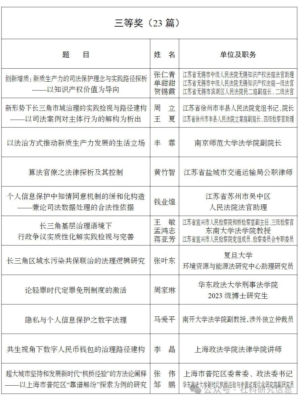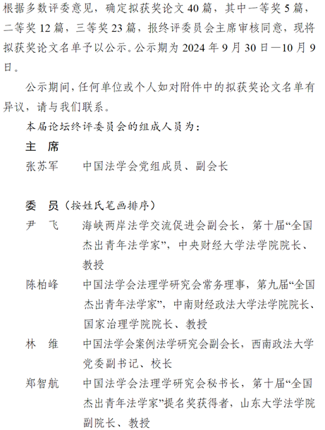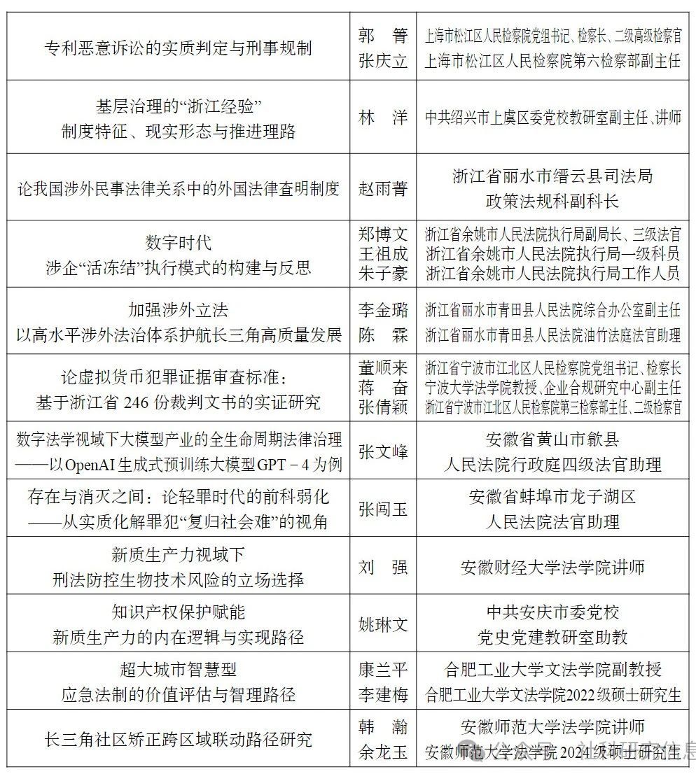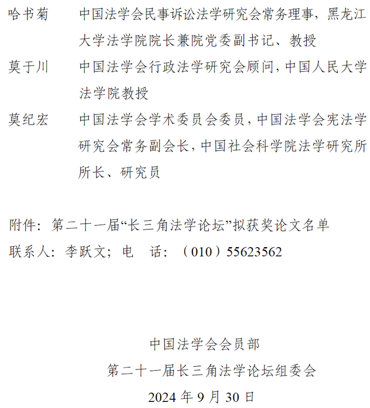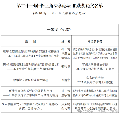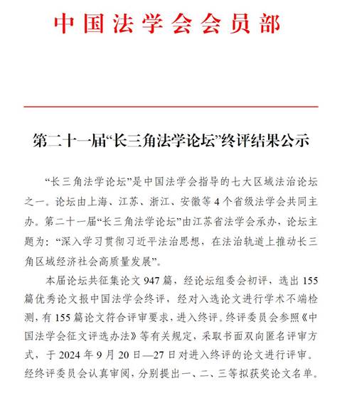 第二十一届“长三角法学论坛”终评结果公示