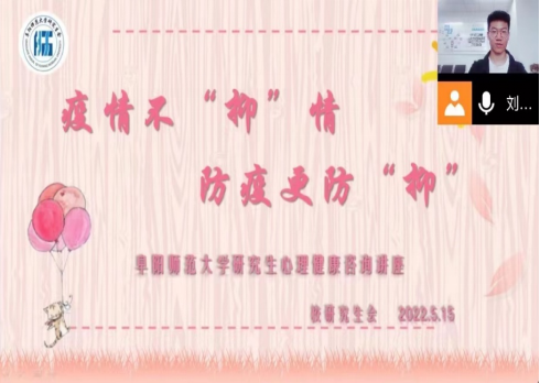 持续变化的新冠疫情,打乱了同学们的正常校园生活,在一定程度上给大家的心理上和精神上造成影响与困扰。为极力消除由此可能给同学们带来的焦虑、恐惧、烦躁等心理和情绪,积极构建平安和谐校园,5月15日晚,校研究生会特邀教育学院心理学博士杨震副教授为在校研究生开展线上心理健康教育讲座。讲座由校研究生会刘男男主持,150余名研究生参加聆听。