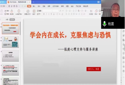 讲座以“学会内在成长,克服心理焦虑与恐惧”为主题,旨在指导同学们以积极的心态主动抗击疫情,了解和掌握心理危机干预的基本方法,学会自我排解负面情绪,达到“疫情不‘抑’情,防疫更防‘抑’”。